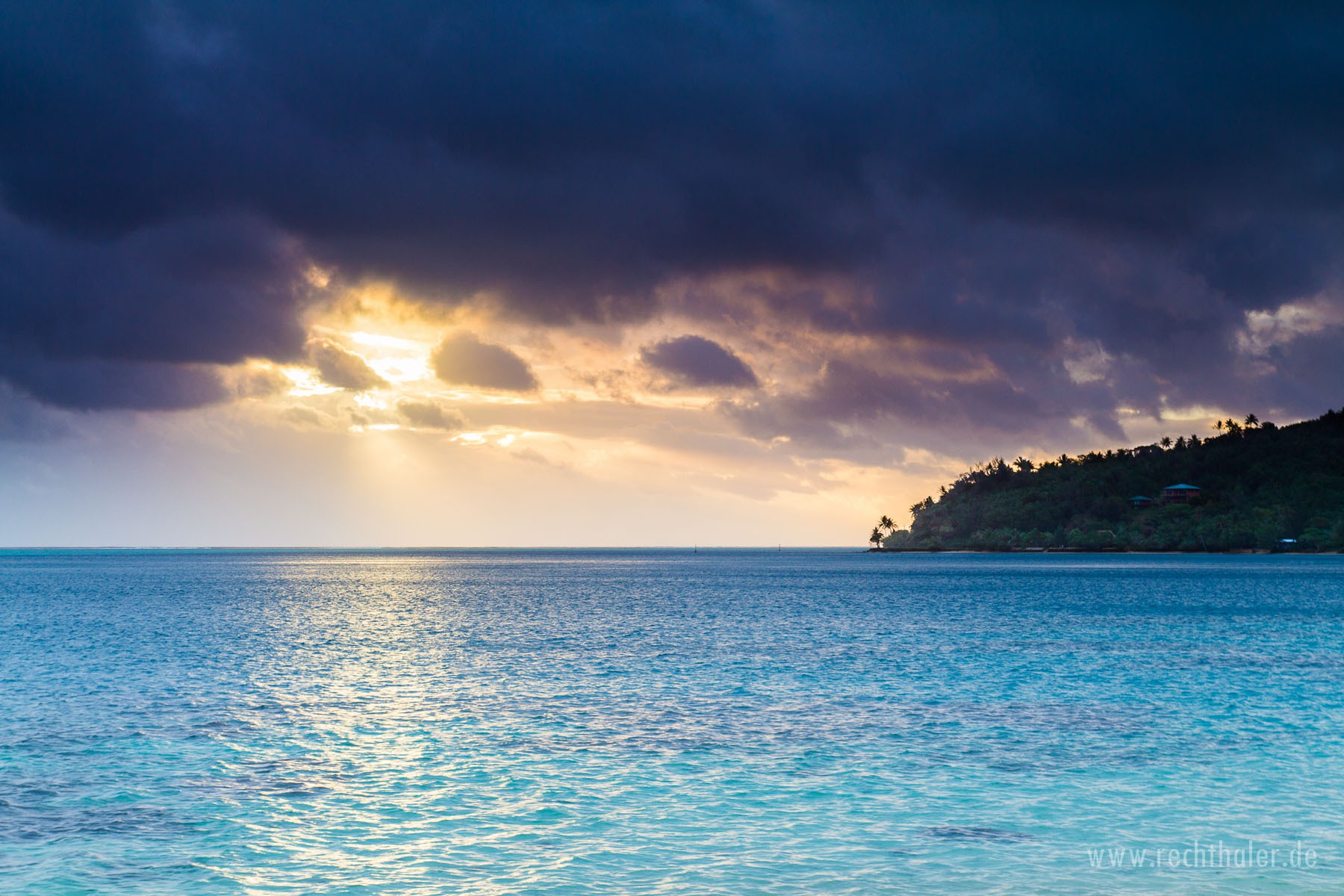 Der Anflug nach Huahine mit der kleinen ATR62 der Air Tahiti war holprig. Es ging ein ziemlicher Wind da draußen, was das kleine Flugzeug auch sofort spüren ließ. Der Landeanflug erfolgt recht niedrig und mit einer schön langgezogenen Rechtskurve über dem Meer. Man hätte fast mit der Hand einen Fisch greifen können.