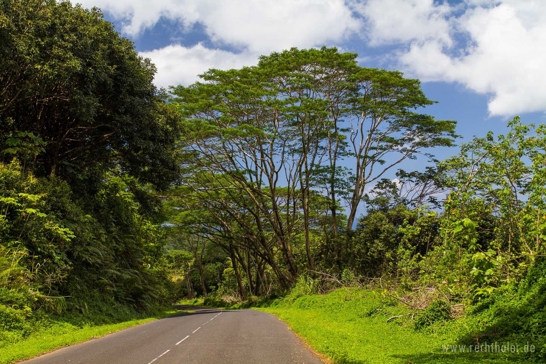 Der nächste Stop auf dem Ausflug war der Besuch einer Vanilleplantage auf der Insel. Mitten im Dschungel wurde uns gezeigt, wie Vanille wächst und wie man sie verarbeitet. Es ist ein langer Prozess, der mit viel Handarbeit zu tun hat. Die getrockneten Vanilleschoten verbreiten in dem ganzen Tal einen wunderbaren Duft. Während uns vieren gezeigt wurde wie man Vanilleschoten sortiert, habe ich plötzlich einen kräftigen rechten Hakenschlag von Nici auf meinen Kiefer bekommen. Der war so stark dass sie sich selbst erschrocken hat und alle anderen sie nur unglaubwürdig anstarrten. Sie meine dann nur „da war ein Moskito“. Ich denke allerdings dass der Stich weniger schmerzhaft gewesen wäre. Alle lachten herzlich, nur ich habe versucht meine Kiefer wieder in die richtige Stellung zu bekommen.