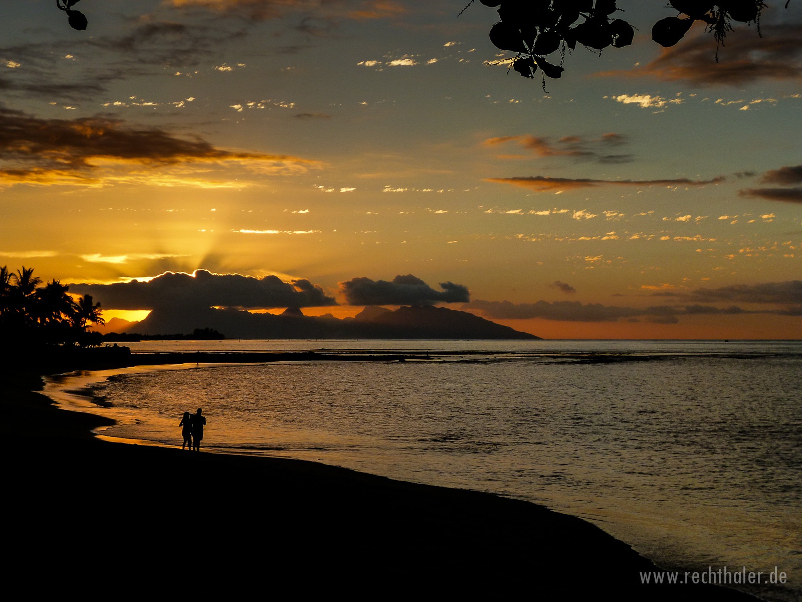 Am Abend wollten wir anstelle eines normalen Restaurants die Roulottes ausprobieren, die sich allabendlich am Hafen in Papeete einfinden. Es handelt sich dabei um fahrende Restaurants, die in einem mobilen Restaurantwagen ähnlich einer Imbissbude leckere Gerichte aller Art zubereiten. Um den Wagen herum werden dann Sitzgelegenheiten aufgebaut, sodass tatsächlich eine Form von Restaurant entsteht. Aus der großen Anzahl an Roulottes war es allerdings schwer, etwas nicht Chinesisches sondern original Polynesisches zu finden. Da die beiden Italiener die gleiche Idee hatten wie wir, hatten wir uns schließlich für einen Franzosen entschieden der Crêpes in allen Varianten angeboten hat. Während wir zusammen gegessen und Bilder ausgetauscht haben, kam dann eine weitere Reisegruppe zu uns, in der auch ein deutsches Paar war. Es stellte sich heraus, dass die beiden deutschen in Chicago leben, der Mann allerdings aus Esslingen war und so nur ca. 30 km von uns zu Hause weg stammt. Zufälle gibt es manchmal….
