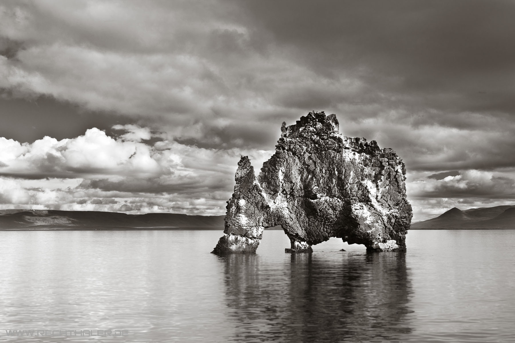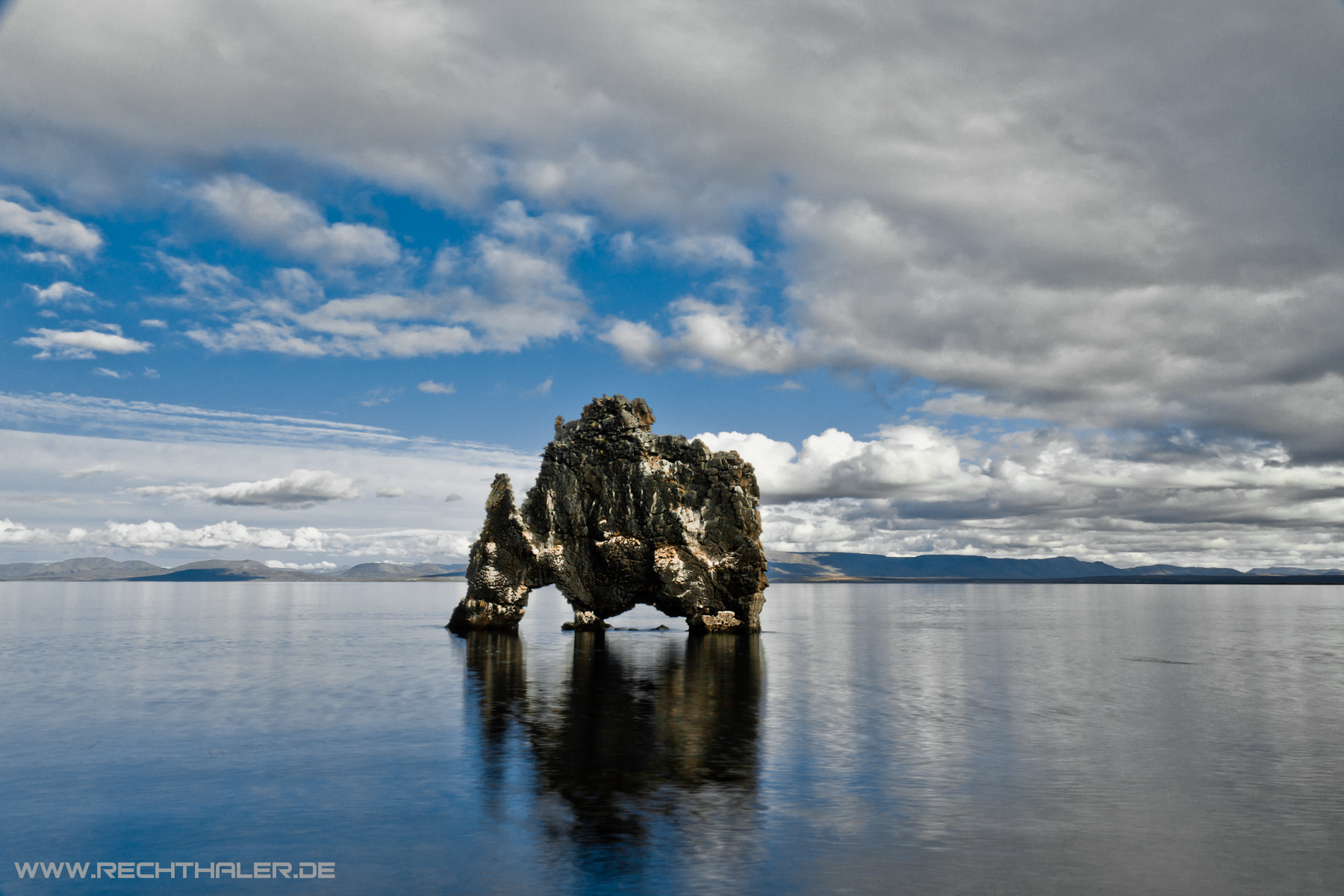 In der Zwischenzeit habe ich mich mit einem kleinen Wasserfall und einen Hot-Pot ganz in der Nähe abgegeben. Nachmittags ging es dann auf unsere größte Etappe mit ca. 330 km. Wir verließen die Nordküste und fuhren Richtung Süd-West auf die Halbinsel Snæfellsness. Unterwegs wollte ich unbedingt zu einem besondere geformten Felsen fahren, der die Form eines Elefanten oder eines sonstiges Ungeheuers hatte. Sein Name ist Hvítserkur. Natürlich fand das Nici wieder total dämlich und entsprechendes musste ich mir anhören. Da sie aber am Morgen die große Reittour gemacht hatte, konnte ich diesen Punkt locker durchsetzen. Der Umweg kostete uns gute 2 Stunden. Später haben wir dann den Felsen immer wieder auf Postkarten und sogar auf einem Puzzle entdeckt und Nici konnte das gar nicht glauben, dass es noch mehr so bekloppte wie mich gibt, die so etwas toll finden.
