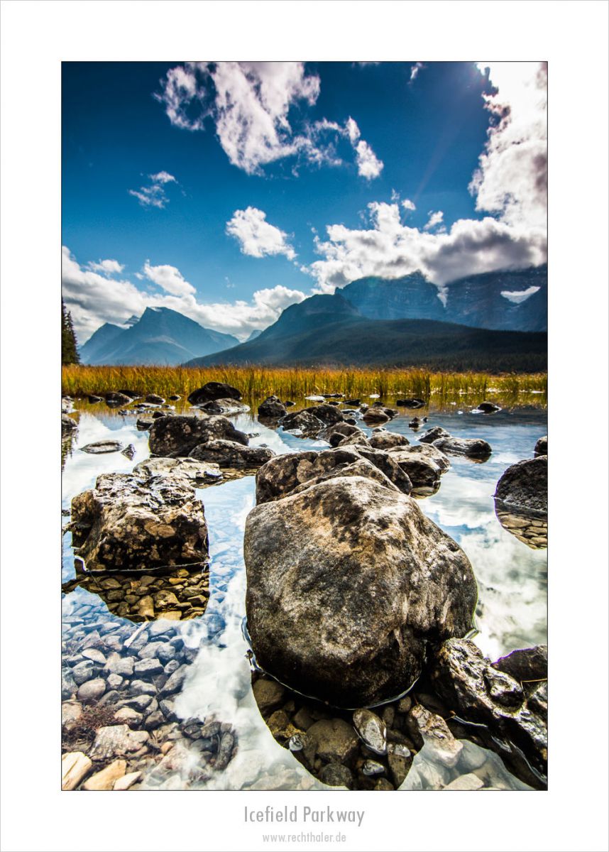 Banff ist eine sehr schöne, kleine Stadt. Zwar findet man hier auch unzählige Souvenirshops, jedoch ist sie deutlich gemütlicher als Jasper und verleitet zum schlendern. Das Wetter war hier ein bisschen besser als in Lake Louise, aber auch hier wusste man nicht, wann es anfängt zu regnen. Wir wollten uns trotzdem noch ein bisschen bewegen und entschieden uns für einen Weg, der überwiegend durch den Wald führt, so dass der Regen im Zweifel nicht so schlimm wäre. Wir parkten am Cave and Basins Museum (in das man mit dem Nationalpark Pass kostenlos rein kann) und liefen ein Stück am Bow River entlang zum Sundance Canyon. Die Beschilderung ist mal wieder wenig eindeutig, aber wir haben intuitiv den richtigen Weg genommen. Der Anfang ist nicht besonders spektakulär, aber wenn man erstmal an der Holzbrücke angekommen ist, an der die Stromschnellen des Canyons beginnen, wird es eine wirklich schöne Wanderung! Ein kleiner Pfad führt durch den Wald, immer wieder vorbei an steilen Felswänden und Stromschnellen. Dann beruhigt sich die Landschaft wieder, der Bach plätschert gemütlich vor sich hin und ist von saftig grünem Moos umgeben. Auf dem Rückweg durch den Wald haben wir noch auf einen Bär gehofft, so viel Glück sollten wir aber nicht haben. Der Rückweg auf dem Teerweg hat sich ziemlich gezogen, so dass wir froh waren, als wir an unserem Camper angekommen sind.