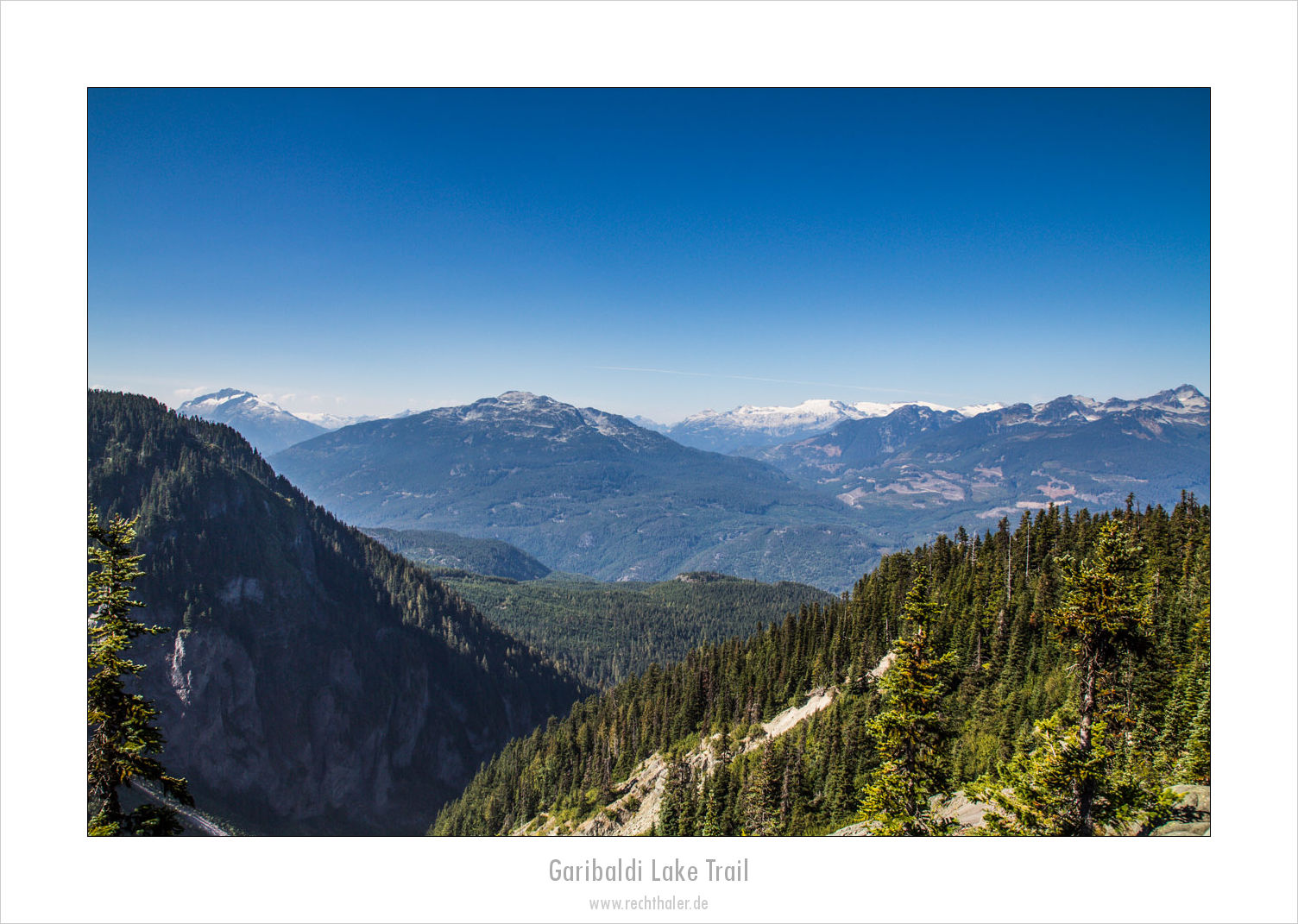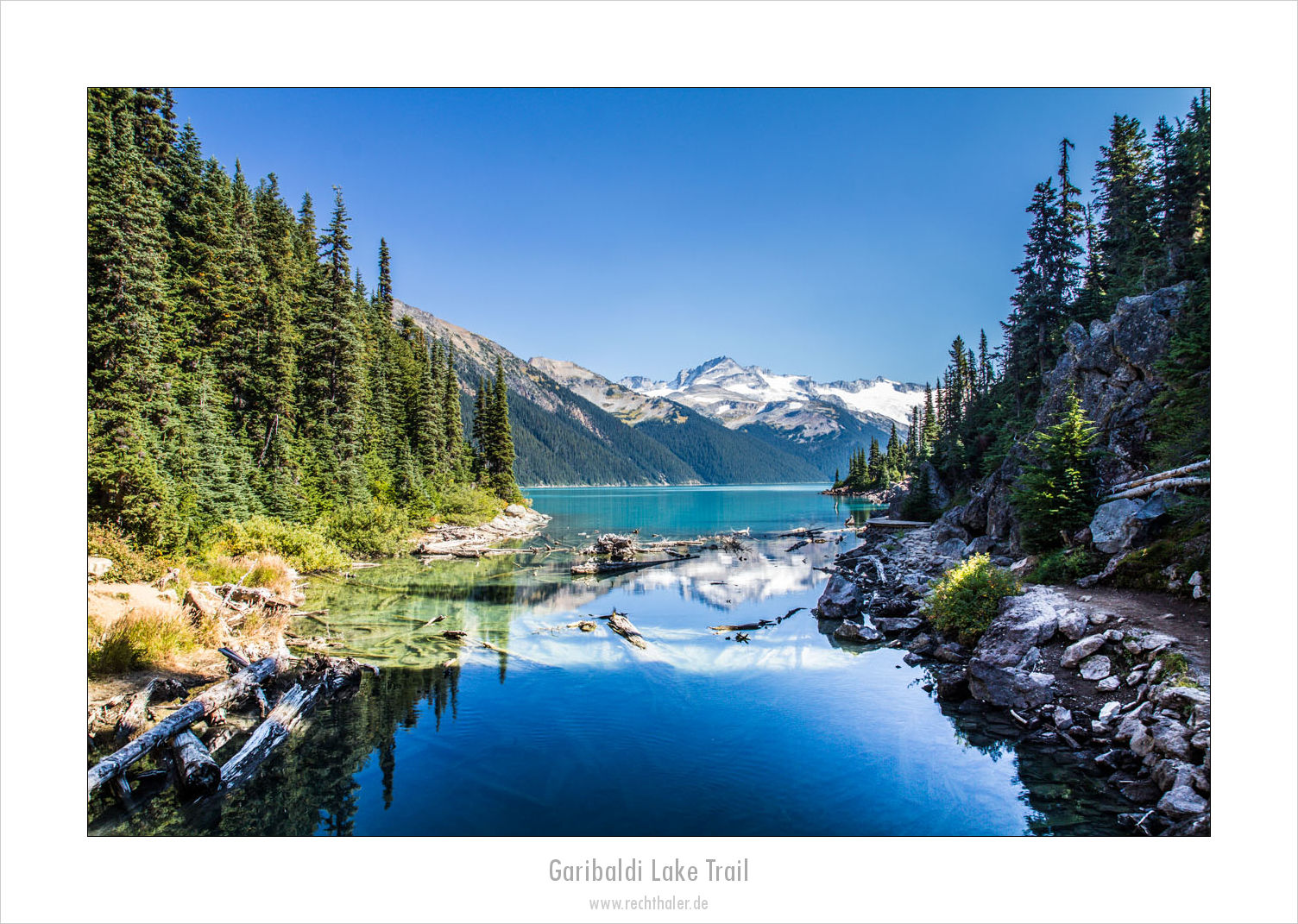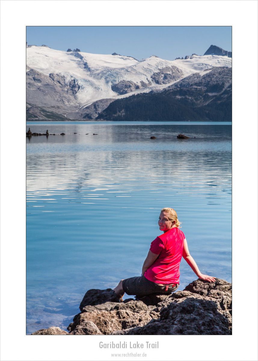 Dann ging es zum restlichen Aufstieg mit „nur noch 3,5km“. Endlich wurden wir für die letzten anstrengenden vier Stunden mit einem wahnsinns Ausblick belohnt! Türkisblau strahlt der Lake Garibaldi vor dem restlichen Gletscher. Wir verweilten fast zwei Stunden oben und konnten uns nicht satt sehen an dieser Kulisse! Hier wäre es sicher auch in der Abendsonne und nachts schön zum Fotografieren. Leider fehlt uns dazu die Ausrüstung mit Zelt etc.