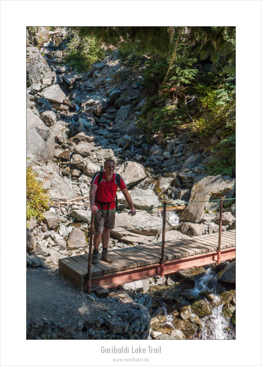 Der Abstieg war wieder genauso eintönig wie der Aufstieg. Zwei Stunden steil bergab laufen. Als wir endlich am Parkplatz angekommen sind, haben unsere Füße geglüht! Wir fuhren weiter nach Whistler auf den Campingplatz Riverside Resort, der pro Nacht mit Service 60$ kostet. ADAC Mitglieder erhalten 10% Ermäßigung. Der Platz ist schön und sehr gepflegt. Es gibt sogar einen kostenlosen Shuttleservice ins Stadtzentrum, das jede Stunde Hin und zurück fährt. Der einzige Minuspunkt ist, dass sie ausgeben Internet zu haben, der Anschluss aber völlig überlastet ist, so dass man es eigentlich überhaupt nicht nutzen kann. Schade auch, dass man kein Lagerfeuer machen darf, was für nicht so schlimm war, da es ohnehin regnete. Man kann sich aber einen Gasgrill ausleihen oder am „public BBQ“ grillen. Ausgiebig haben wir die Duschen benutzt und dann noch Ravioli aus der Dose gemacht, weil wir zum richtig kochen zu müde waren. Nachdem wir unsere Fotoausbeute begutachtet haben sind wir dann auch totmüde ins Bett gefallen.