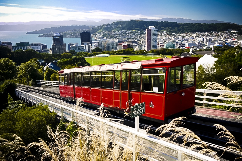 Jetzt ging es zur Cable-Car, einer der Attraktionen in Wellington. Sie führt hinauf zu einem Berg über der Stadt wo der Botanische Garten und das Observatorium stehen. Das Cable-Car ist etwas anders als in San Francisco, da hier inzwischen alles automatisch und computergesteuert ist. Im angeschlossenen Museum sieht man aber noch die alten Cable-Cars, die eigentlich genauso aussehen wir in San Francisco. Einziger Unterschied – diese CC fahren nur am Hang, deshalb sind sie eher wie eine Bergbahn gebaut (also alles schräg an den Hang angepasst). Nach einem ausgiebigen Besuch des Museums (Eintritt frei) sind wir wieder in die Stadt hinunter gefahren um mit dem Auto nun zu einem Aussichtspunkt hoch über der Stadt zu fahren. Dort habe ich einige nette Bilder gemacht, da das Wetter nun endlich auch nach Urlaub aussah.