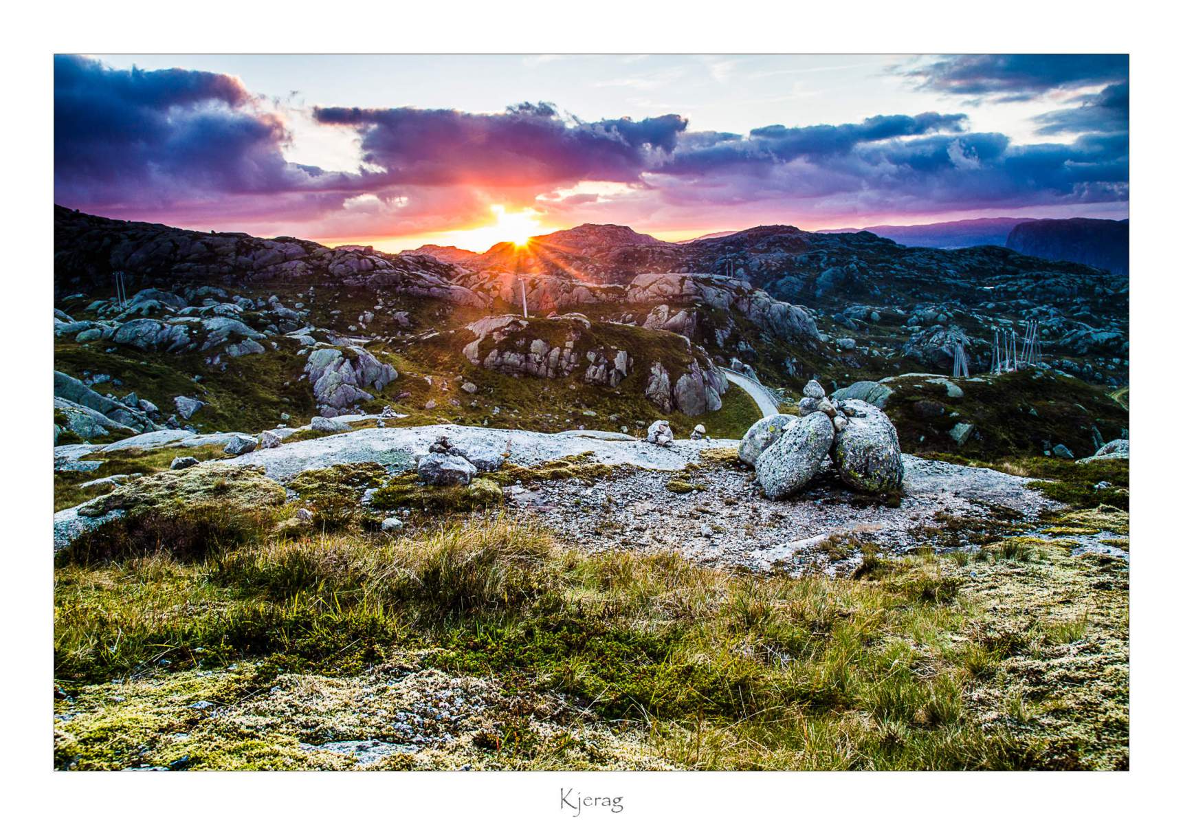 Der frühe Vogel fängt den Wurm! Wir frühstückten schon um 7:30 und haben auch gleich noch die Fähre für den nächsten Morgen gebucht, was aufgrund der schlechten Internetverbindung leider recht viel Zeit in Anspruch nahm. Die nächste Hürde war dann das Parkticket. Das Kassenhäuschen ist erst ab 9 Uhr besetzt und die Zahlung mit Kreditkarte ist nur im Restaurant möglich, und das auch erst am Nachmittag. Letztendlich haben wir einen Zettel in die Scheibe gelegt und haben uns um 9:15 zu unserer ersten Wanderung aufgemacht. Es war mächtig anstrengend! Wir haben drei Anstiege (der dritte war gefühlt mindestens so hoch wie der Mount Everest) und zwei Täler durchwandert. Es boten sich herrliche Anblicke: Seen, Schafe, Blumenwiesen, ferne Gipfel durch die sich der Fjord durchschlängelt. Bis heute sind wir uns nicht sicher ob wir unser Echo gehört haben oder ob die Wildcamper im zweiten Tal auf unseren Jodler geantwortet haben. Nach zwei Stunden haben wir dummerweise den Weg verloren und sind zusätzlich einen riesen Umweg gelaufen. Nach vielen Fotostops haben wir dann irgendwann auch unser Ziel –den Kjeragbolten- erreicht. Der Kjeragbolten ist ein kleiner Felsklumpen, der zwischen zwei steilen Felsenkanten eingeklemmt ist. Unter dem Bollen geht es 300 Meter in die Tiefe in den Fjord. Es sind Wahnsinns Fotos entstanden! Einige Touris hatten da auch interessante Techniken, die für unsere Belustigung sorgten… An diesem Tag war nur ganz wenig los und so konnten wir unser Vesper direkt an der Steilklippe mit Blick in den Fjord zu uns nehmen! Wir konnten uns gar nicht mehr losreißen und verweilten für ca. eine Stunde in diesem Panorama. Als wir uns auf den Rückweg machten sind wir mal wieder nicht den markierten Weg gelaufen (einfach nicht zu belehren). Durch Zufall haben wir dann einen atemberaubenden zweiten Aussichtspunkt entdeckt. Er ist nur ca. zehn Minuten vom Kjeragbolten entfernt bietet aber ein fast noch schöneres Panorama. Der Rückweg hatte es auch nochmal in sich. Das haben Berge und Täler dummerweise so an sich dass man immer wieder hoch muss. Zu allem Überfluss verabschiedete sich bei Julias Wanderschuhen, die jahrelang treue Dienste geleistet haben jetzt auch noch die Sohlen. Schließlich schafften wir es doch noch unbeschadet unten anzukommen und belohnten uns erstmal, indem wir direkt am Wanderparkplatz unsere Campingstühle aufgeklappt haben und Spezi und Schokonüsschen genossen. Das war herrlich die Füße in den Wind zu strecken und den Leuten beim anstrengenden Abstieg zuzuschauen. Nach einer kurzen Rast haben wir dann unseren nächsten Übernachtungsplatz gesucht. Wir sind über eine kleine Hochebene gefahren und entschieden uns für einen Platz mit Blick aufs Wasser neben einer kleinen Straße, die aber nicht stark befahren ist. Wieder hatten wir einen geraden Untergrund und super Ausblick. Als wir gerade unseren Campingtisch und Grill aufgebaut hatten gesellte sich eine Herde Schafe zu uns. Diese Viecher sind echt rotzfrech und absolut unerschrocken. Schlimmer als ein bettelnder Hund haben die uns fast die Burger vom Teller geklaut! Als hin und wieder doch neidische Blicke aus vorbeifahrenden Campern kamen hatte einer die dumme Idee sich zu uns zu stellen. Den haben wir kurzerhand aus unserem Idyll vertrieben indem wir den Stromgenerator aufgestellt haben. Zwei Fliegen mit einer Klappe: Den neuen Campern war es zu laut und sie verzogen sich und wir konnten die Batterien unserer Kameras aufladen. Wir waren völlig erledigt von der anstrengenden Wanderung und dem Sonnenbrand, den wir uns eingefangen haben. Deswegen sind wir auch direkt in unser Kuschelbettle nachdem wir den schönen Sonnenuntergang noch genossen haben.