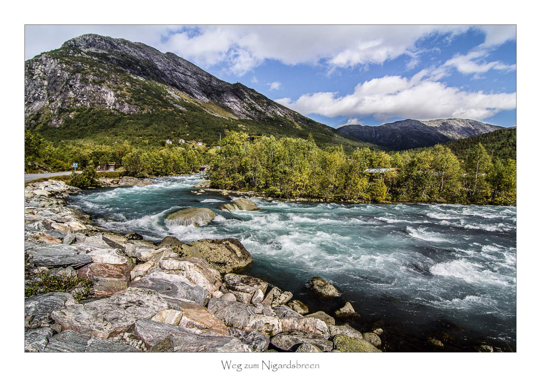 Der weitere Weg führte uns wieder von der Aurlandsfjellet hinab ins Tal Richtung Laerdal, wo wir die Fähre zum anderen Fjordufer nahmen. Wir wollten heute weiter bis zum Gletscher Nigardsbreen, wo wir evtl. eine Gletscherwanderung oder andere Aktivitäten unternehmen wollten. Die Fahrt zog sich ziemlich in die Länge, immer entlang am Gletscherfluss der in einer toll türkisfarben in der Sonne schien. Das Wetter selbst war etwas gemischt mit einem Mix aus Sonne und Wolken, aber zumindest kein Regen. Angekommen am Besucherzentrum staunten wir erst mal wieder über die skandinavische Architektur. Das Haus erinnert entweder an einen Wikingerhelm oder an die kleinen Raumschiffe aus Independence Day. Wir haben uns von einem Guide dort über die Möglichkeiten einer Gletscherwanderung informieren lassen, stellten jedoch fest, dass wir 1 Stunde zu spät dran waren um die heutigen Wanderungen mitmachen zu können. Die einzige Möglichkeit bestünde also darin, hier zu übernachten und dies am nächsten Tag in Angriff zu nehmen.