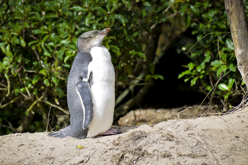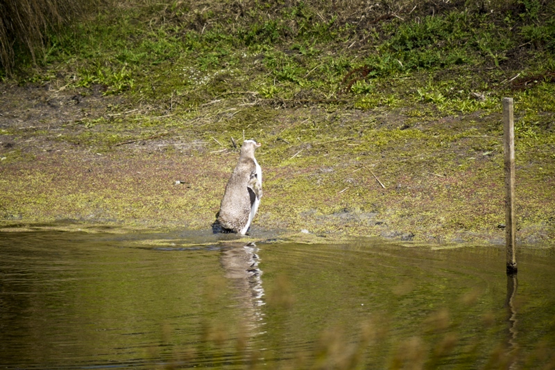 Um 8.30 Uhr öffnete das Visitorcenter und wir haben erst einmal eine Kaffee getrunken. Dann ging es weiter und auf der Fahrt kamen wir erneut an einer Pinguin-Kolonie vorbei. Dort sind wir rein gegangen. Der Eintritt hat mich fast umgehauen, wollten die doch umgerechnet 40 Euro für beide von mir haben. Mit großen Schmerzen hab ich meine Kreditkarte (die im Übrigen schon fast glüht) hin gehoben und dann ging es zu den Pinguinen. Die standen einfach mitten auf dem Weg rum oder haben sich gemütlich gesonnt. Auf jeden Fall haben die sich nicht weiter von uns stören lassen und wir sind bis auf ein paar Meter an sie ran gekommen. Dabei sind auch einige nette Bilder entstanden.